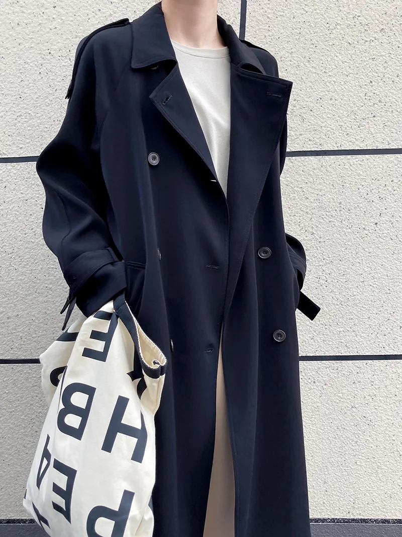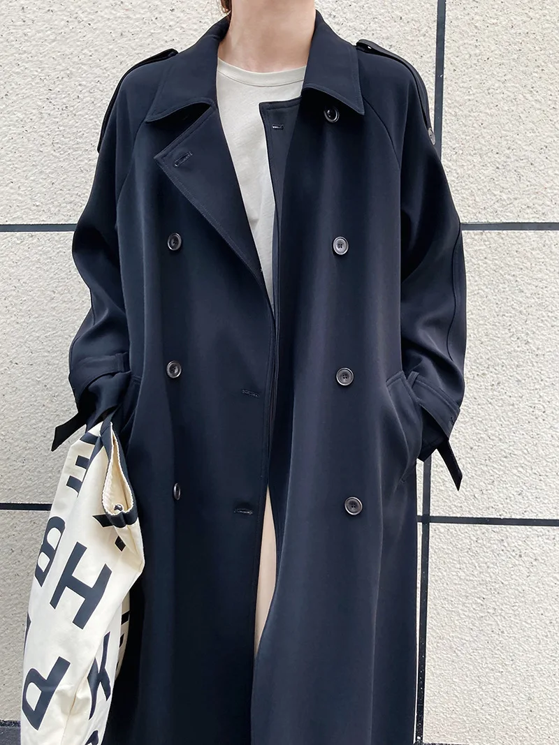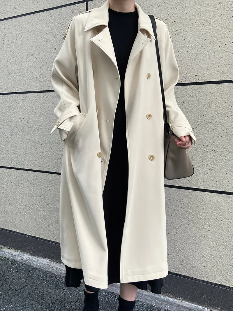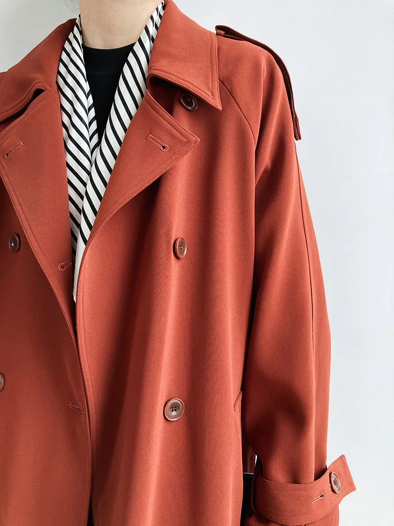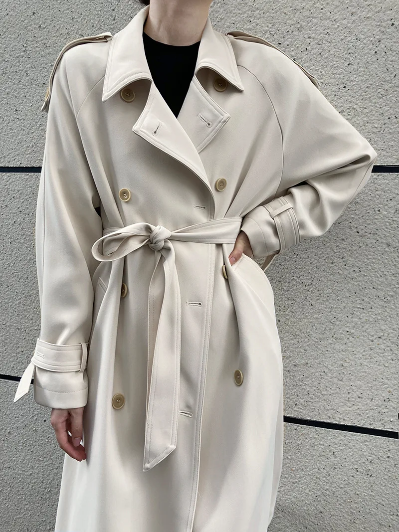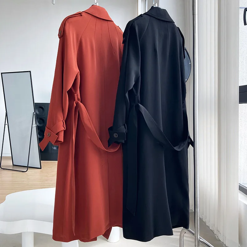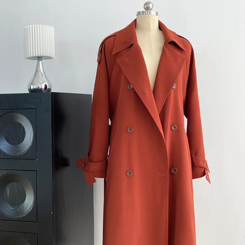 Women’s Long Double-Breasted Trench Coat – High-Quality Autumn Streetwear Casaco