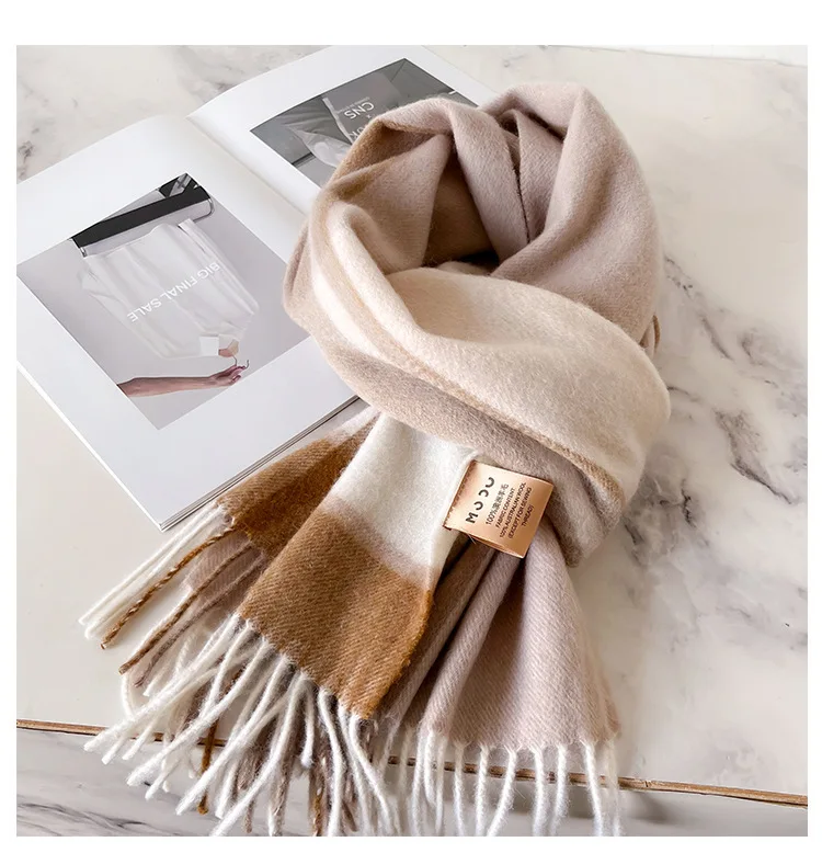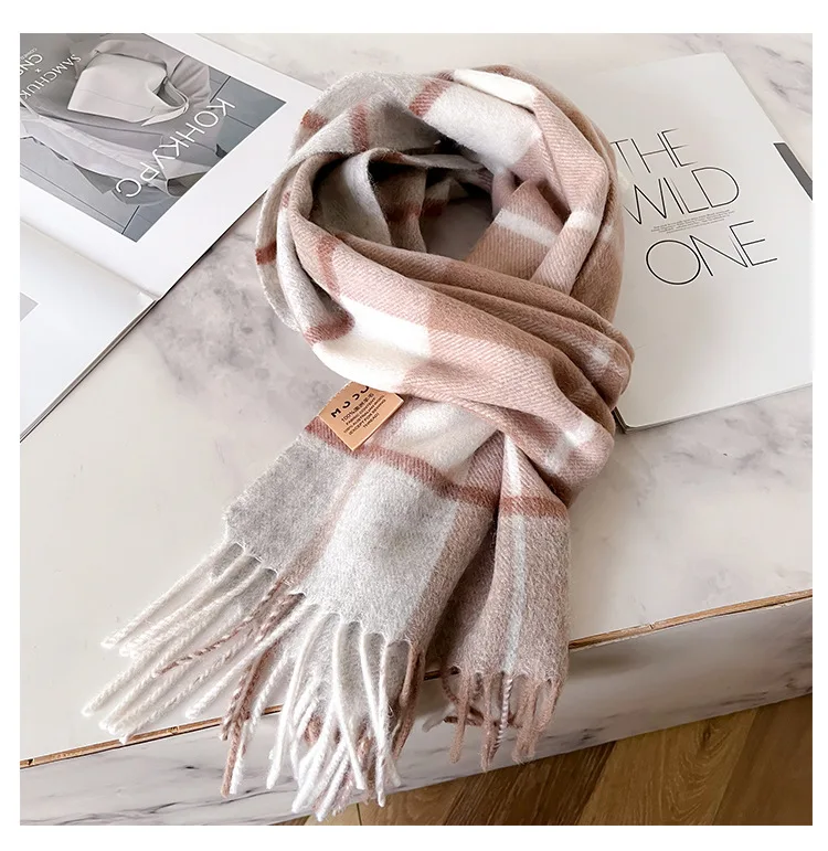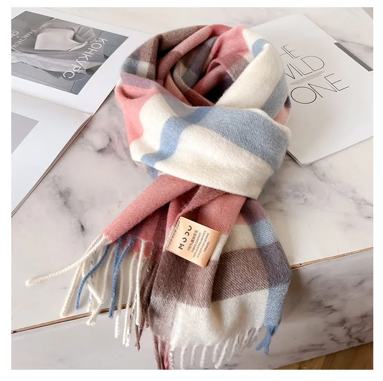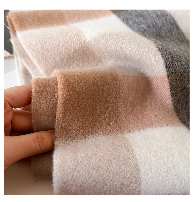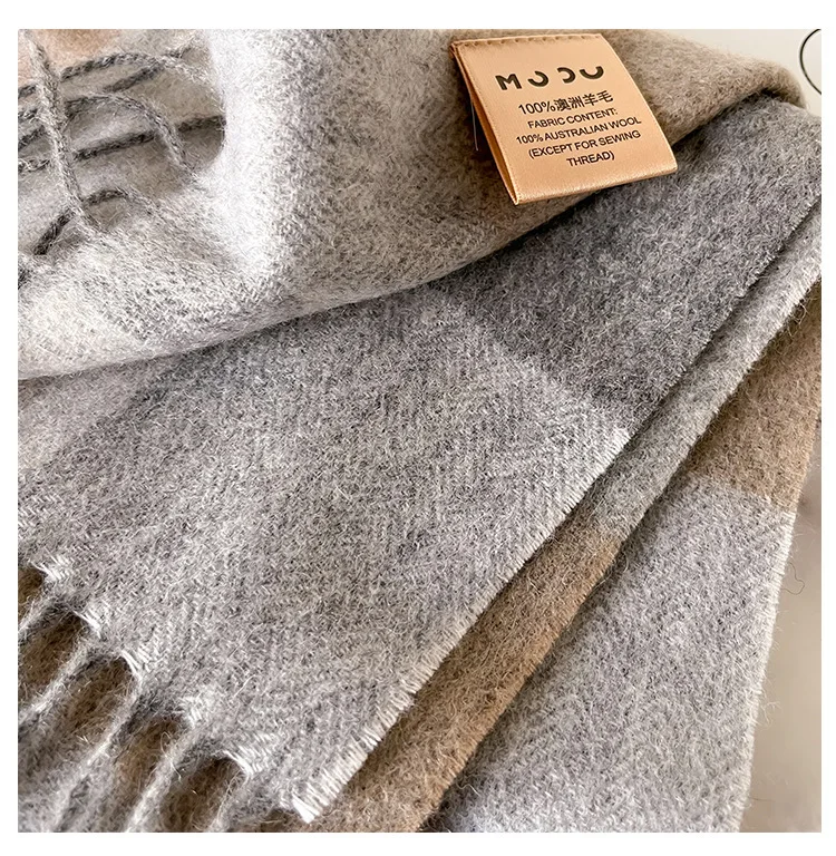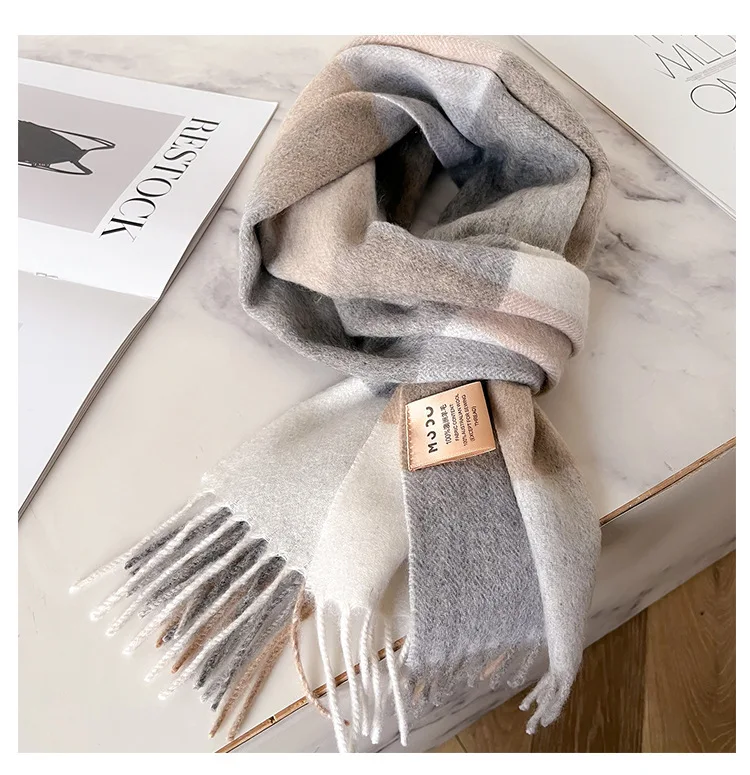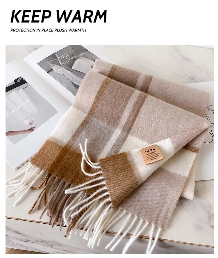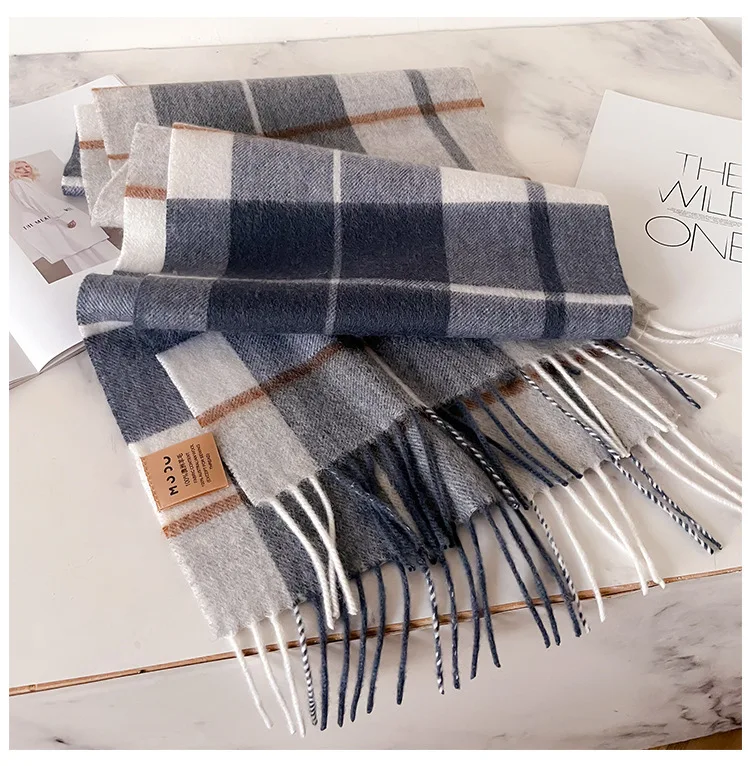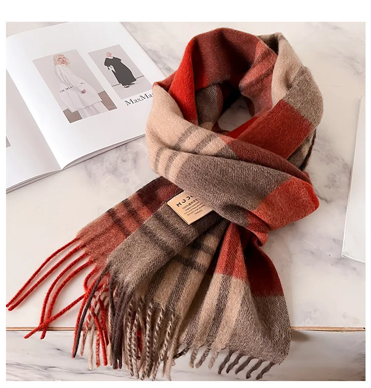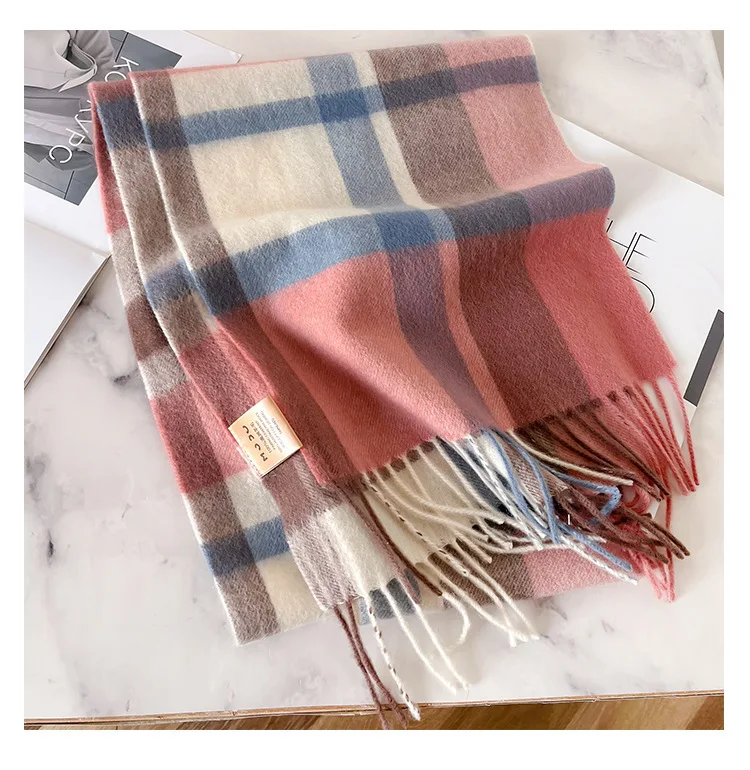 Women’s 100% Wool Plaid Scarf – Luxury England-Style Striped Shawl with Tassels, Pashmina Wrap
