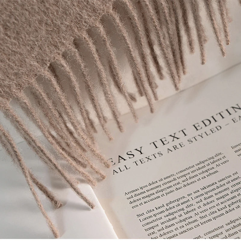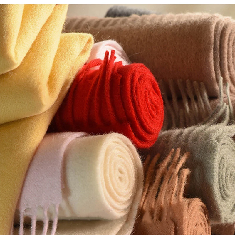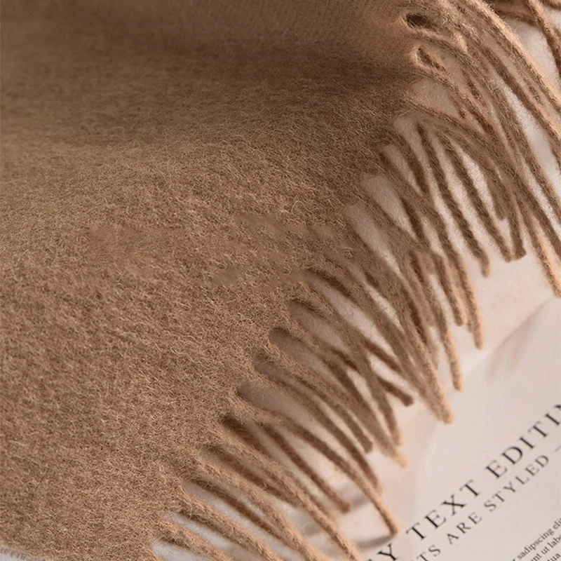 Women’s 100% Wool Winter Scarf – Thick Solid Color Shawl with Tassels, Luxury Pashmina Wrap