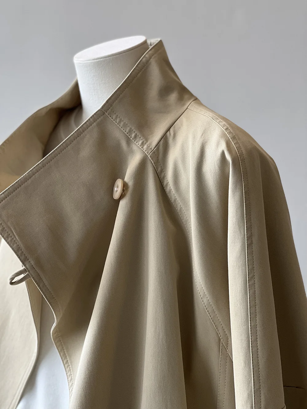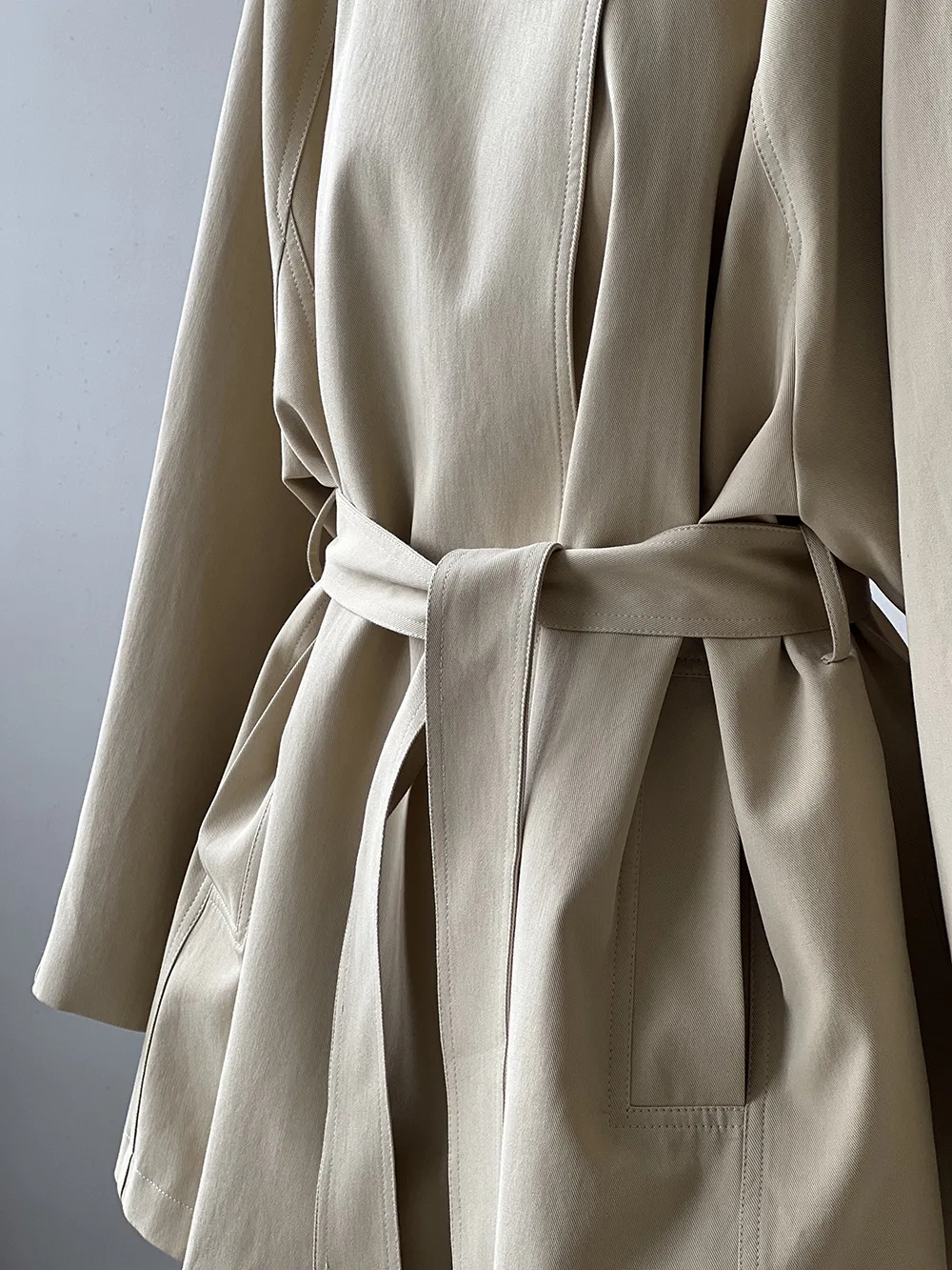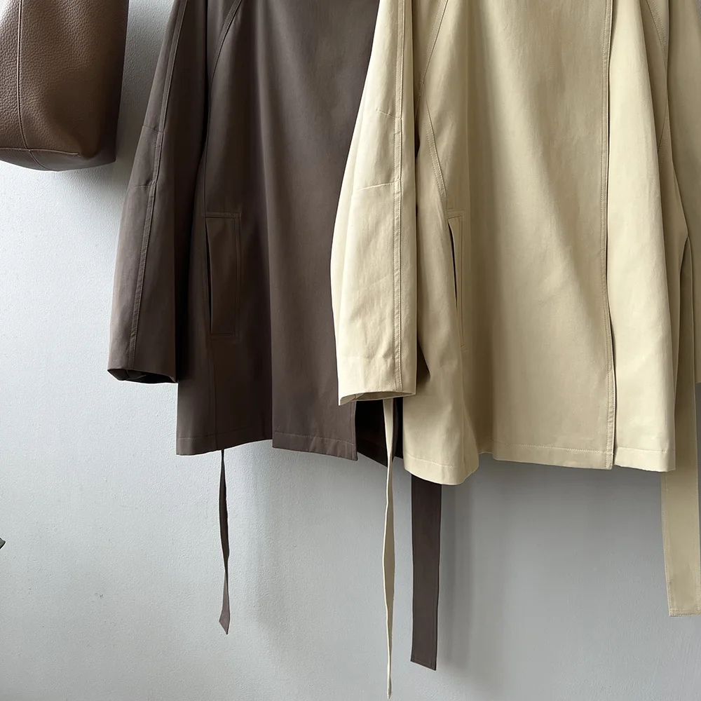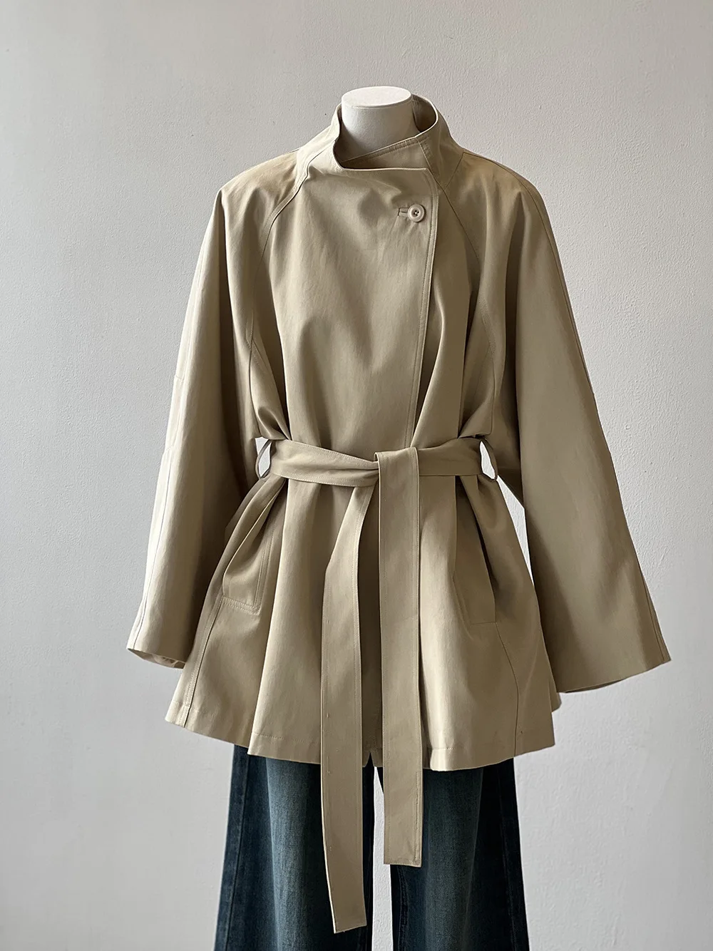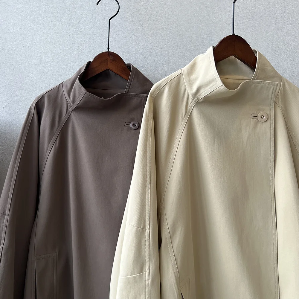 Women’s Khaki Trench Coat with Belt – Loose Stand Collar Autumn 2025 Casaco Feminino