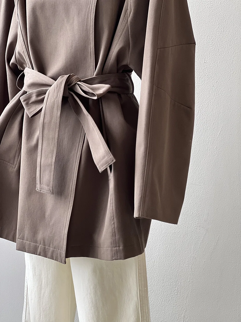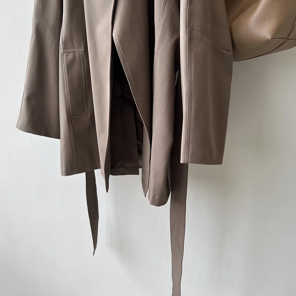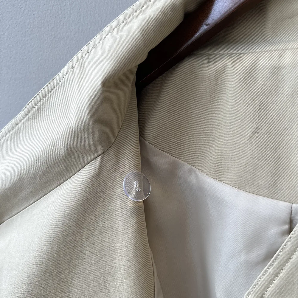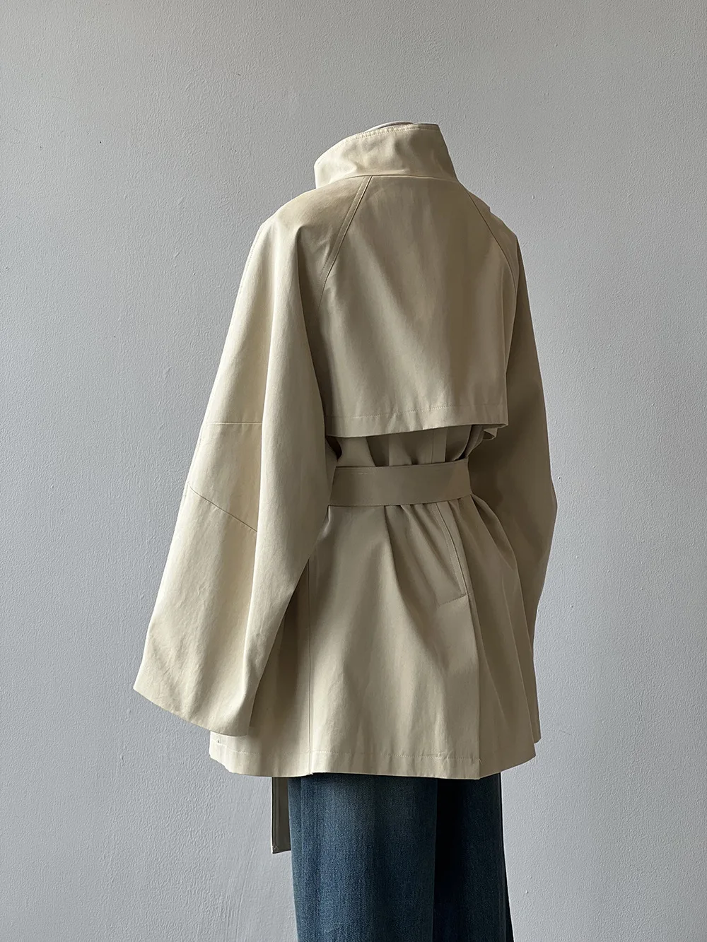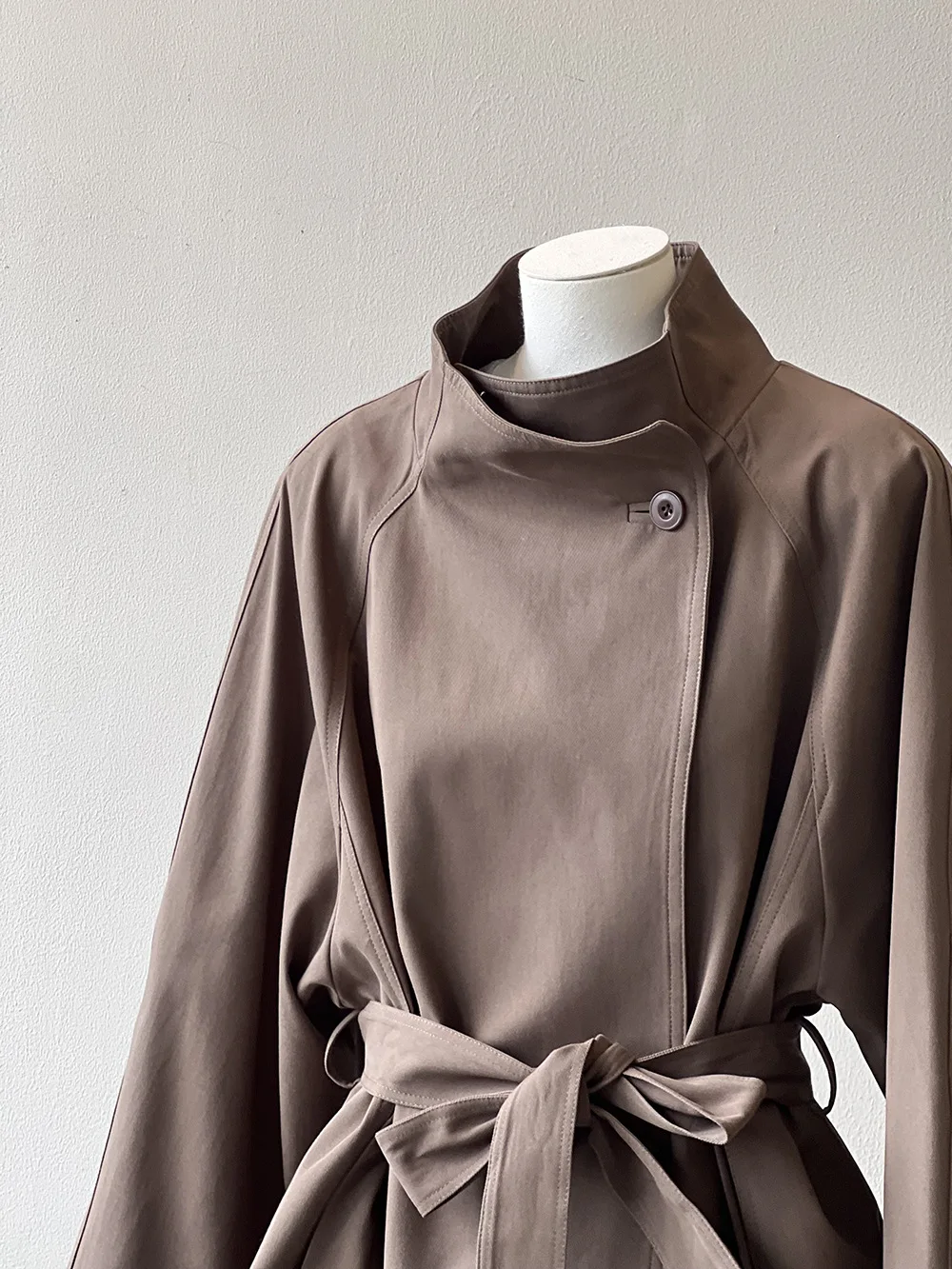 Women’s Khaki Trench Coat with Belt – Loose Stand Collar Autumn 2025 Casaco Feminino
