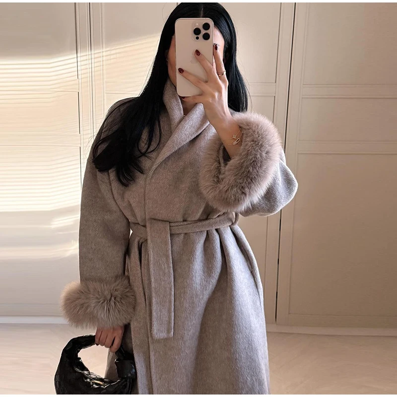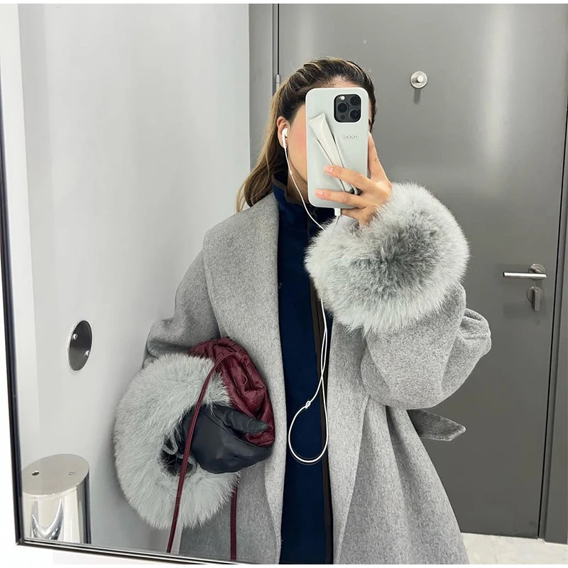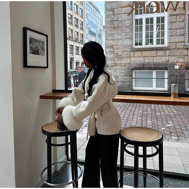 Women’s Lace-Up Short Overcoat – Elegant Woolen Patchwork Cardigan Jacket 2025