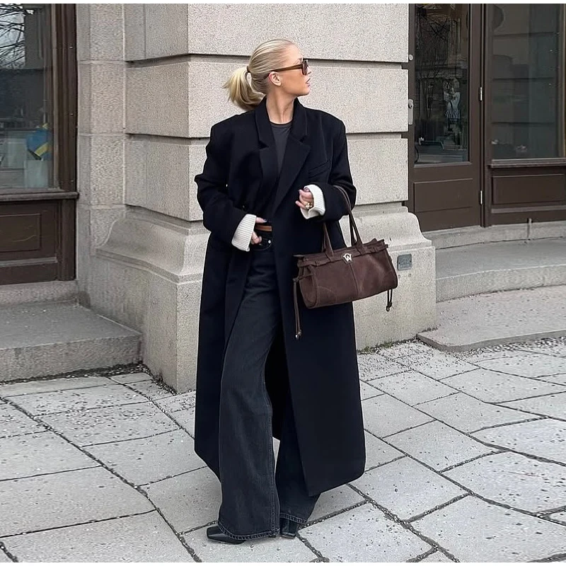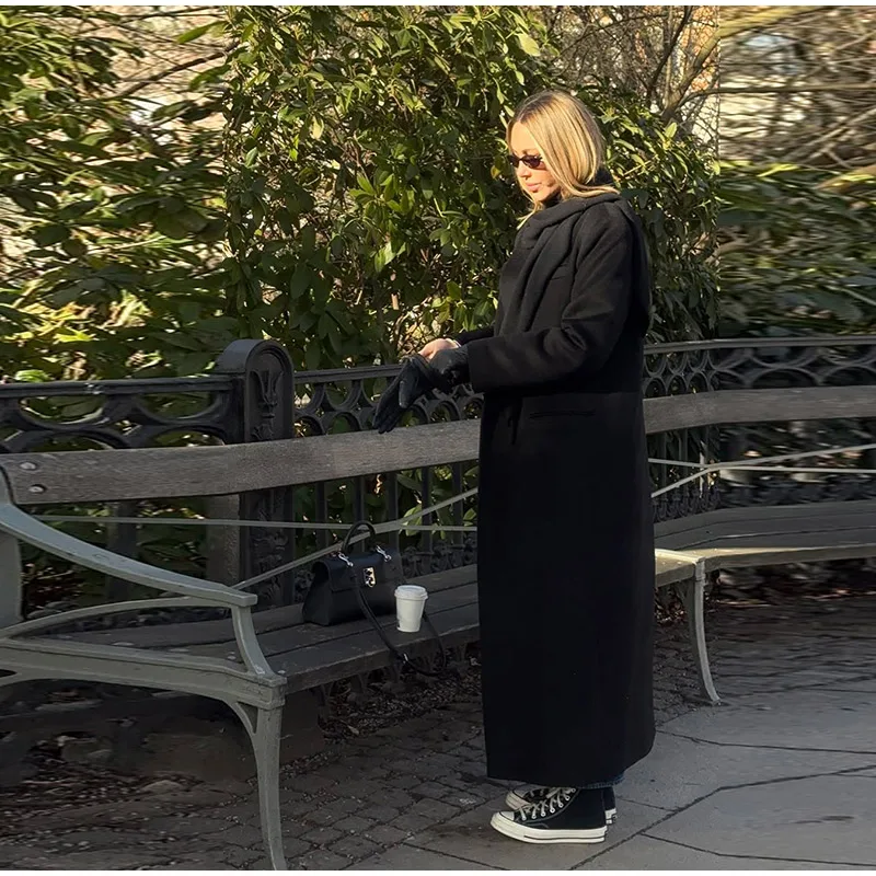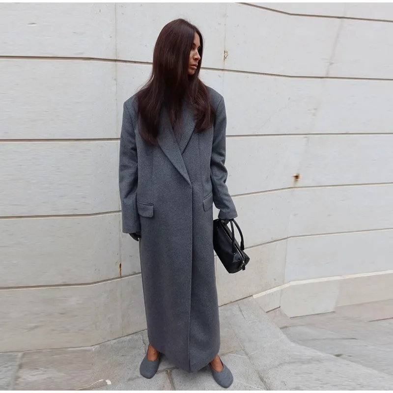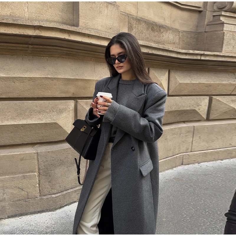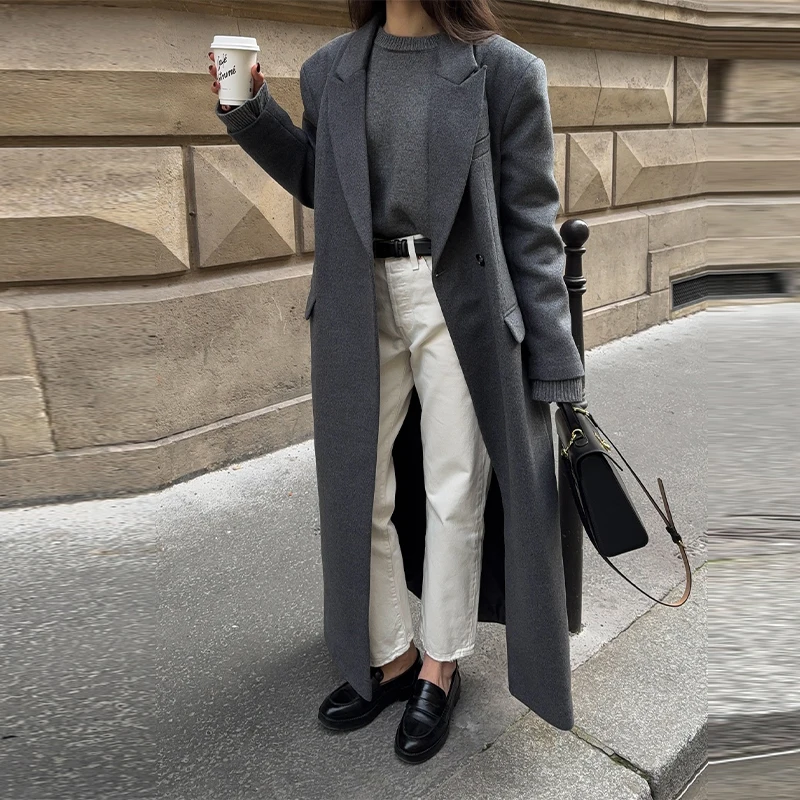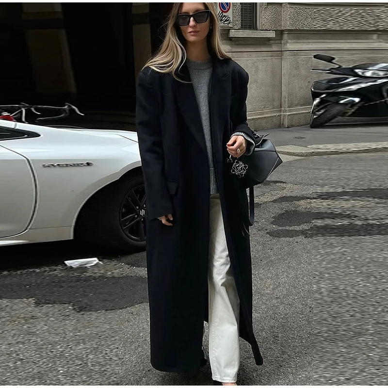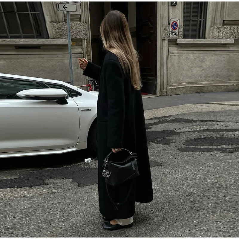 Women’s Long Wool Coat – Casual Turn-Down Collar Single-Button Overcoat 2025 Autumn Winter