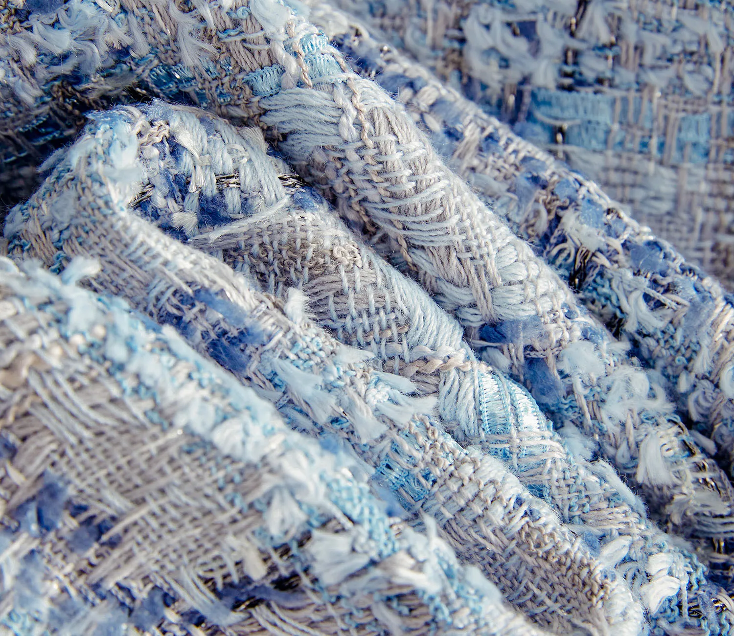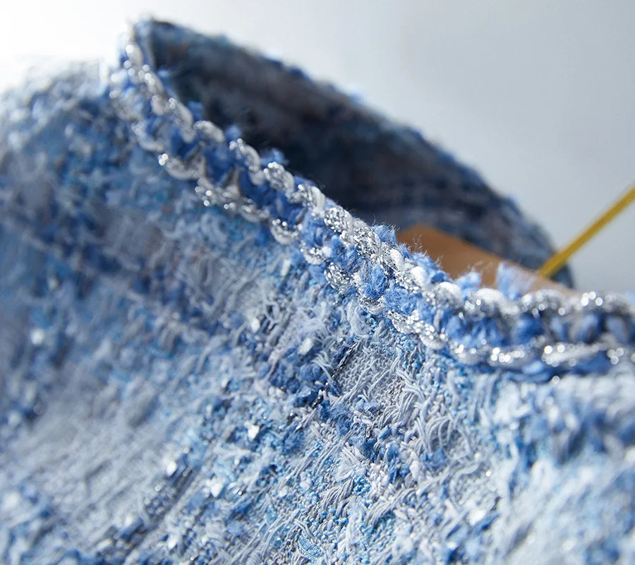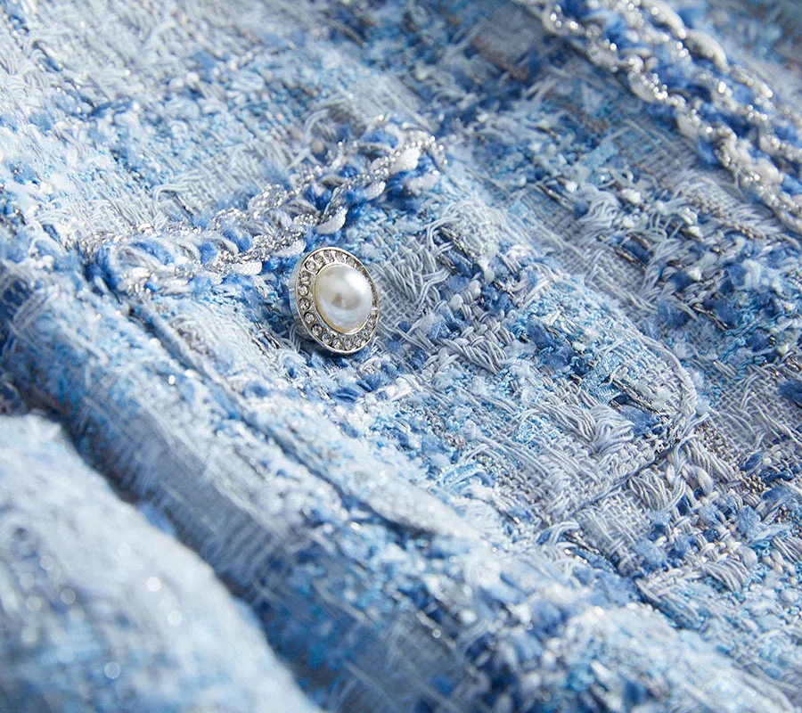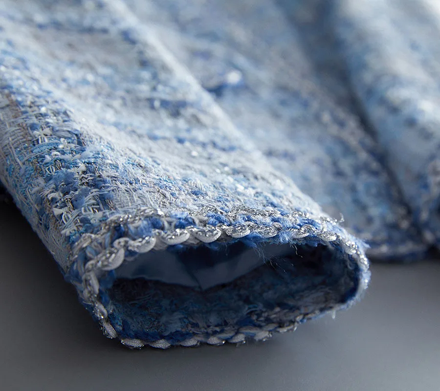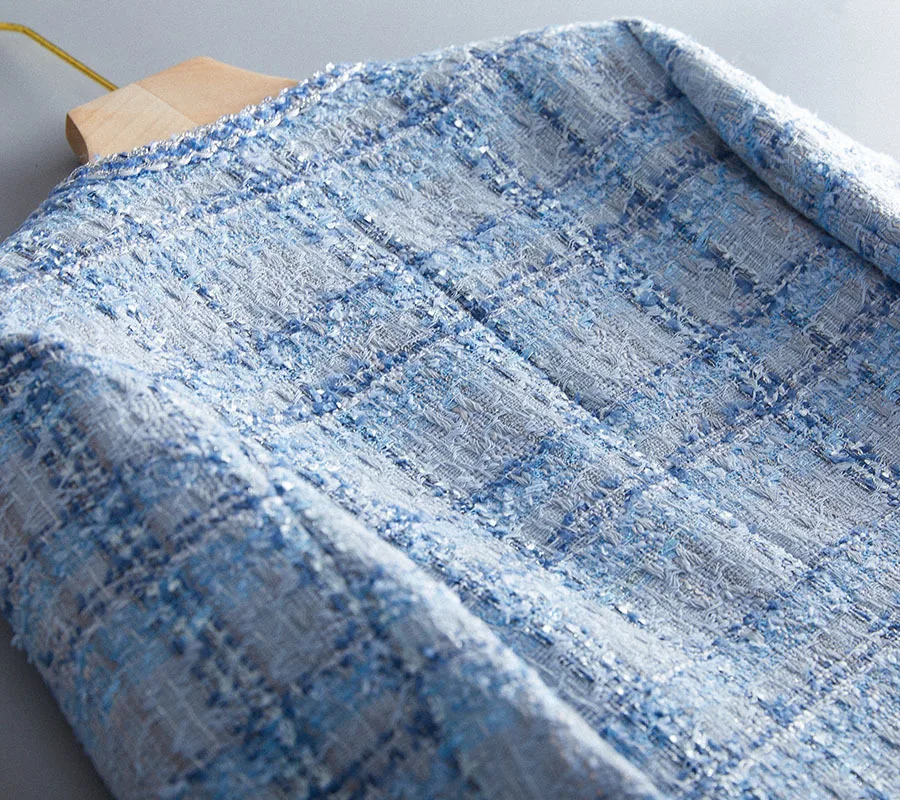 Women’s Plaid Tweed Jacket – Elegant O-Neck Blue Coat for Spring & Autumn